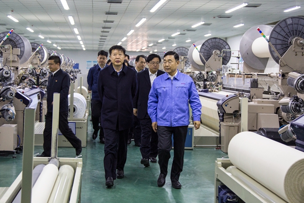 2019年3月16日,高密市委書記卞漢林,市委副書記、市長王文琦,市人大常委會主任萬麗,市政協主席劉明倫等市領導前來孚日控股集團觀摩調研。孚日控股集團董事長孫日貴陪同觀摩。