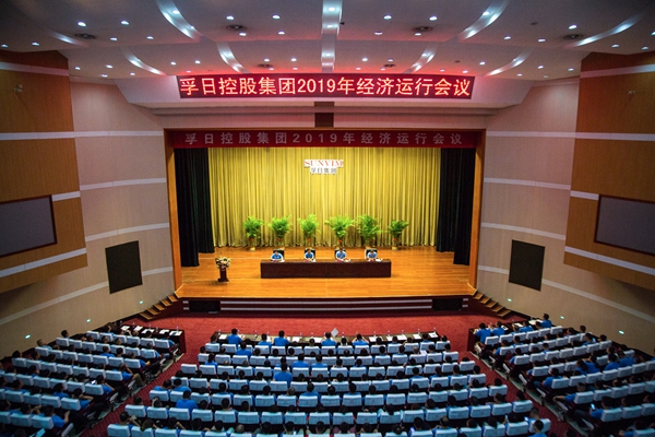2019年7月19日,孚日控股集團2019年經濟運行會議在員工俱樂部影劇院隆重召開。集團領導孫日貴、孫勇、吳明鳳、張國華等出席會議。集團各公司、各部室負責人、業務骨干、全體股東和員工代表一千人參加大會。大會由集團黨委書記孫勇主持。