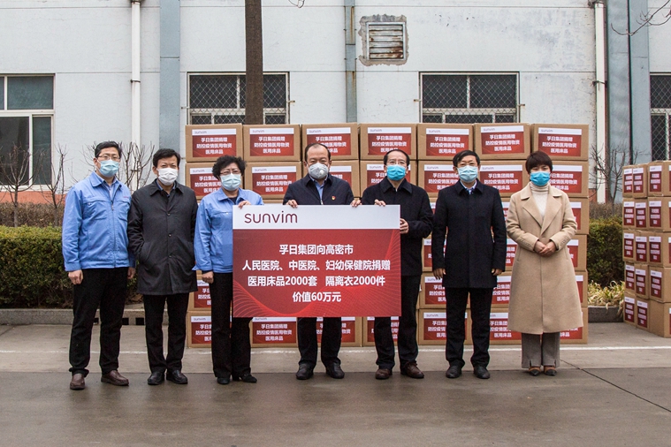 此外,為了援馳抗疫,1月29日,孚日集團(tuán)向高密市慈善總會(huì)捐款100萬元,專項(xiàng)用于疫情防控。復(fù)工復(fù)產(chǎn)后,孚日集團(tuán)在第一時(shí)間組建起醫(yī)用產(chǎn)品生產(chǎn)專線,加班加點(diǎn)趕制醫(yī)用床品、隔離衣等防疫物資。2月14日,孚日集團(tuán)通過高密市慈善總會(huì)向高密市人民醫(yī)院、中醫(yī)院、婦幼保健院定向捐贈(zèng)被套、床單、枕套等醫(yī)用床品2000套和隔離衣2000件,并安排專車送往各醫(yī)院指定地點(diǎn)。該批醫(yī)用物資總價(jià)值為60萬元。