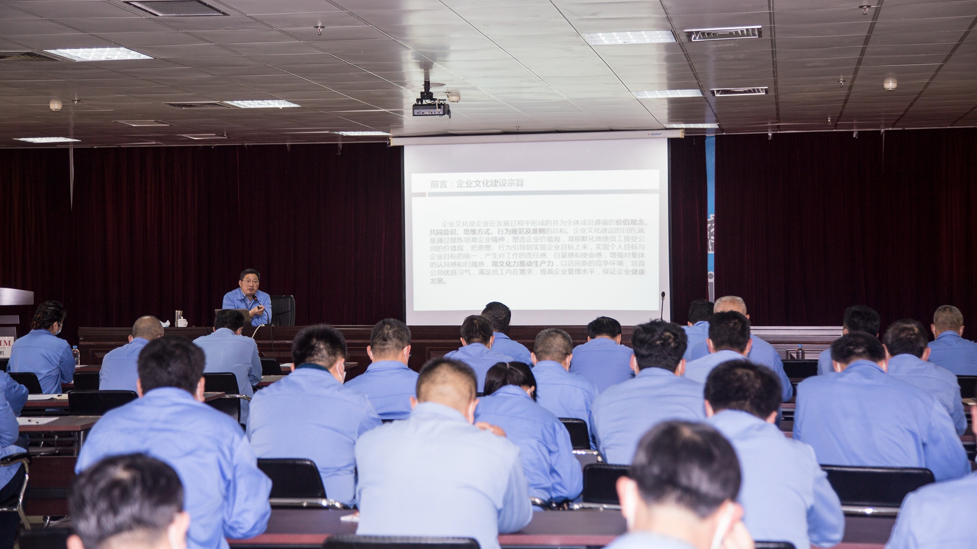 綦宗忠在講解中指出,企業(yè)文化是企業(yè)在發(fā)展過程中形成的并為全體成員遵循的價(jià)值觀念、共同意識、思維方式、行為規(guī)范及準(zhǔn)則的總和。企業(yè)文化建設(shè)的目的,就是通過提煉培育企業(yè)精神,塑造企業(yè)價(jià)值觀,潛移默化地使員工接受公司的價(jià)值觀,把思想、行為引導(dǎo)到實(shí)現(xiàn)企業(yè)目標(biāo)上來,實(shí)現(xiàn)個(gè)人目標(biāo)與企業(yè)目標(biāo)的統(tǒng)一,產(chǎn)生對工作的責(zé)任感、自豪感和使命感,增強(qiáng)對集體的認(rèn)同感和歸屬感,用文化力推動(dòng)生產(chǎn)力,以適應(yīng)新的競爭環(huán)境,培育公司優(yōu)良習(xí)氣,滿足員工內(nèi)在需求,提高企業(yè)管理水平,保證企業(yè)健康發(fā)展。