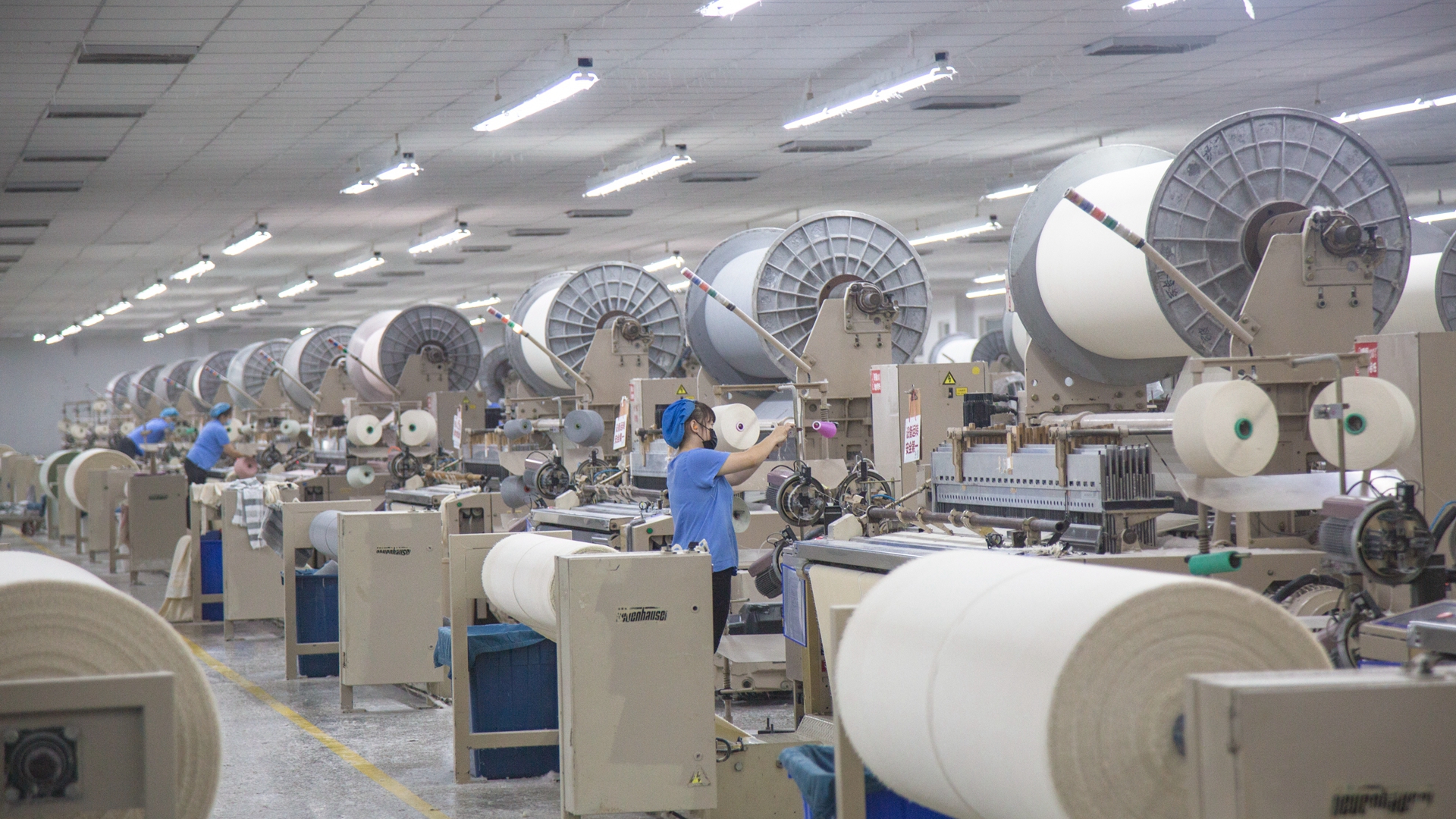 寒冬臘夜,臨近春節,孚日生產車間依然燈火通明,工人們正加緊趕制發往歐洲的紡織品訂單。